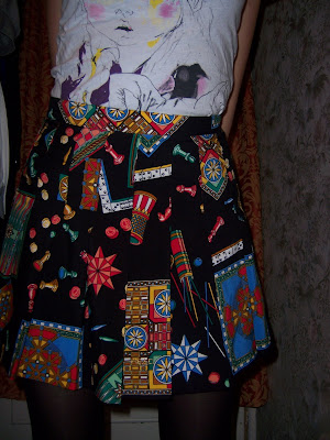 3 for £1 skirts: This has a weird Chessboard pieces Print (My Fav). They are all old 'Head' sports brand skirts. I think it is originally Tennis Skirts. They have that tennis skirt cut and style. They are also pleated which I love. Sorry for dark pics!