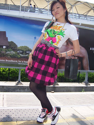 Vest: Men's H&M (£3.99), Belt: Primark (£2.99), Skirt: Home made, Socks: Topshop (£2), Bag: Aldo (£6.99), Jaket: H&M (£29.99)
