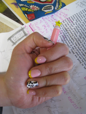 Back to the real post: My nails! My 14 year sister is a star when it comes to doing my nails! They always look perfect, and dry super quick. Not like when I do it haha! The colours are inspired by my Mario star Nintendo DS pen! Baby Pink and Yellow = hotness: