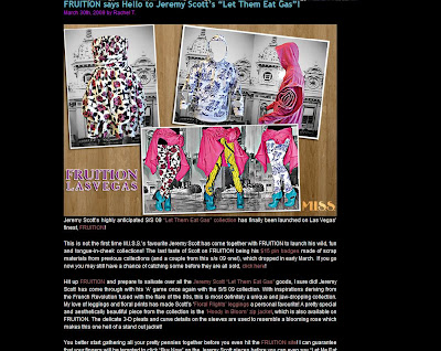 On to M.I.S.S.! My latest piece, Jeremy Scott's SS09 collection is now available on FRUTION! Check out my post for the full story, "FRUITION says Hello to Jeremy Scott's "Let Them Eat Gas""!