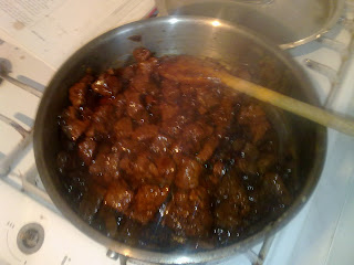 This is what the filling looks like after 2 hours on the stove and a small bottle of wine.