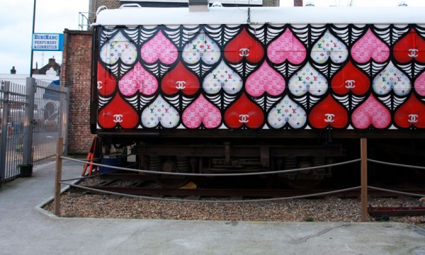 Graffiti artist Insa (y'all remember those bad ass heels that were featured on almost every blog right?) has just completed a 38tonne piece named "Heartfelt" on a train in the middle of Deptford. LOOKS FUCKING SICK! Prints of THE DOUBLE C'S, GUCCI G's and LV's on upside down hearts (aka juicy bumbums), all over a train carriage! Hot damn, I love it. From Insa, with love: